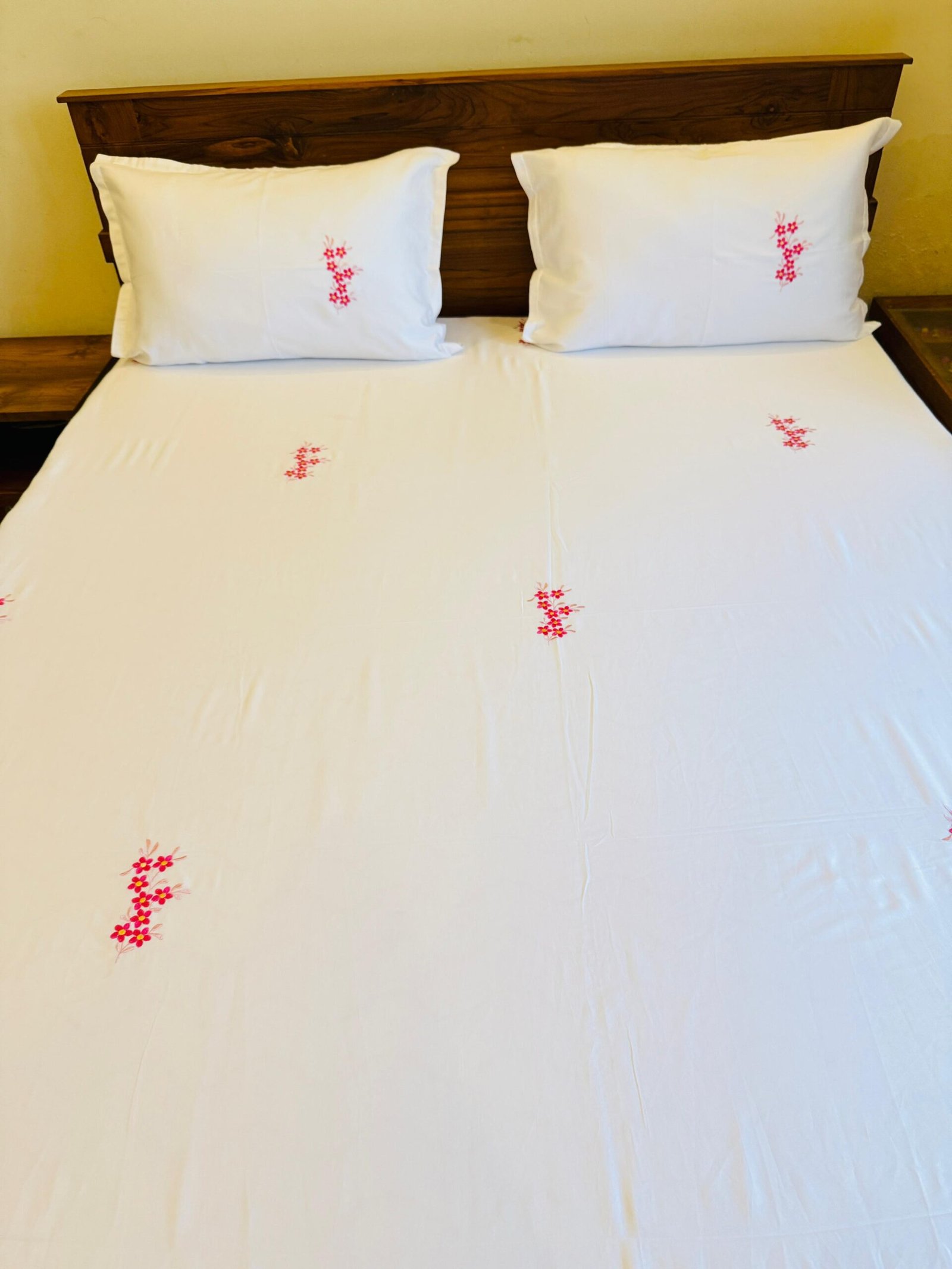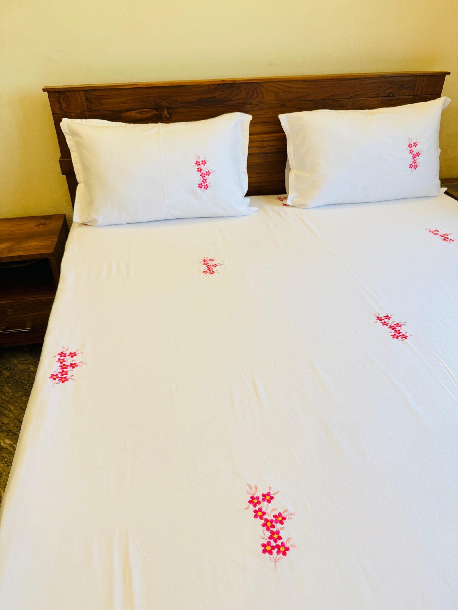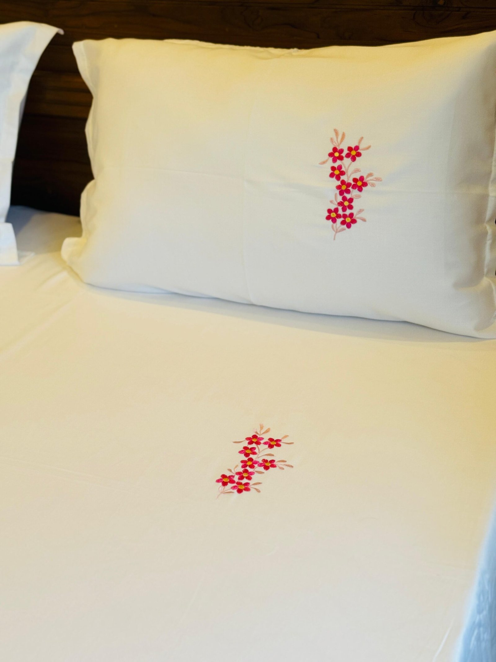 BLUSH BLOSSOM – Embroidery bed sheet setAvailability: 1 in stock