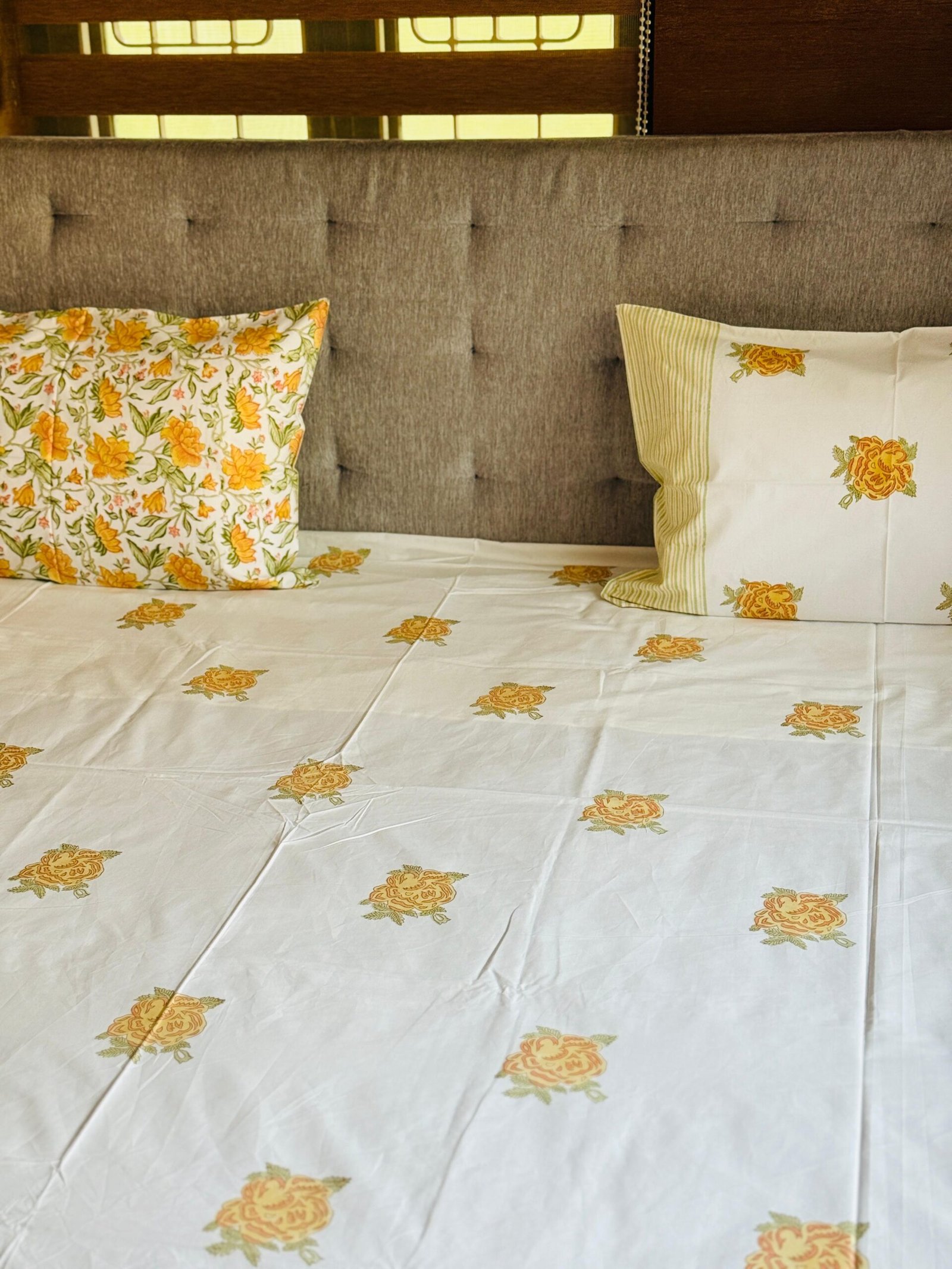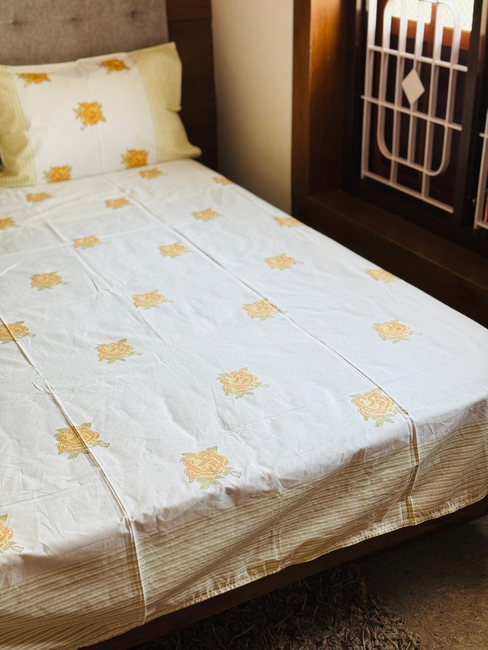 GOLDEN ROSE – Block printed bed sheet set