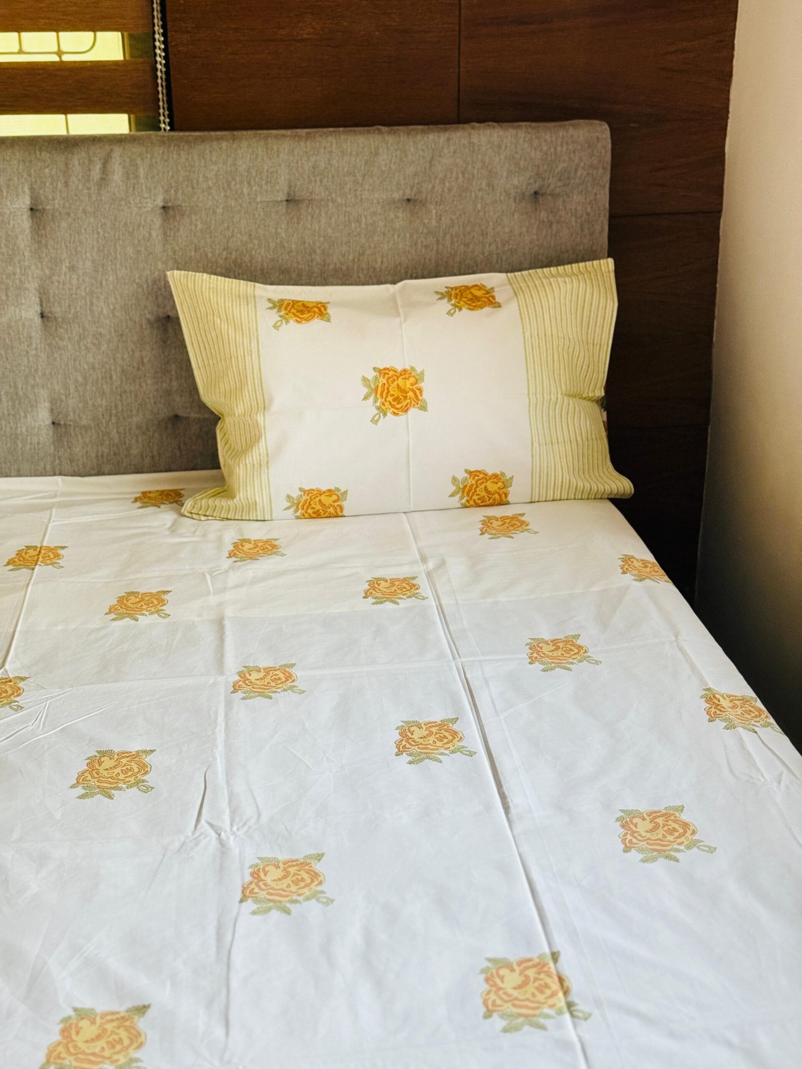 GOLDEN ROSE - Block printed bed sheet setGOLDEN ROSE – Block printed bed sheet set